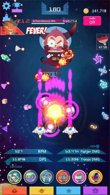 自旋战斗机是一款卡通风格的射击类游戏,在游戏中玩家驾驶一辆特殊的旋转宇宙战机,在太空中进行冒险和射击,轻点屏幕进行射击和战斗,灵活的躲避各种炸弹,喜欢的就来玩吧。