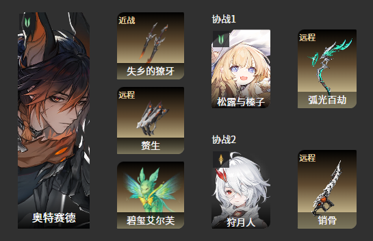3、狩月人:为主C奥特赛德提供武器伤害加成,提升输出效率。