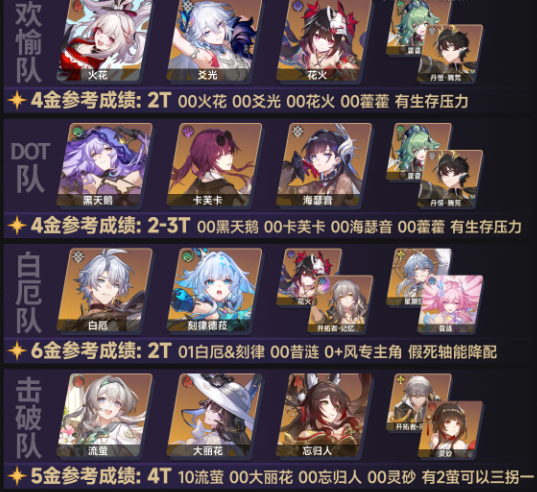 1、阵容:流萤+大丽花+忘归人+同谐主