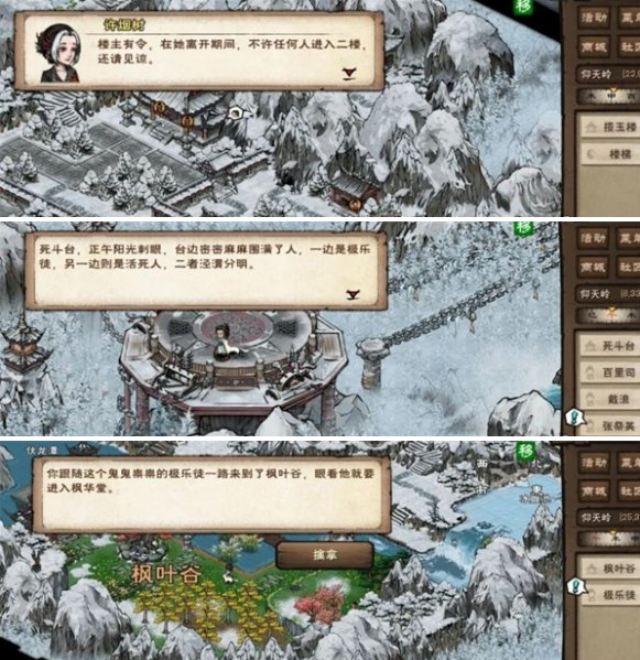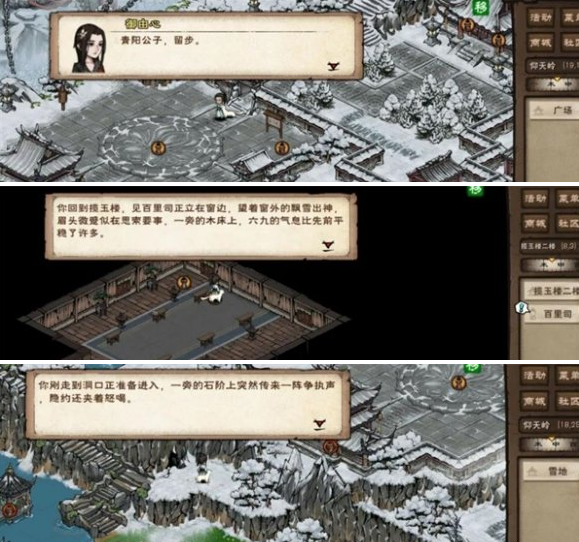 8、回到揽玉楼二楼与百里司(8,3)对话,再到(7,3)多次与六九对话。