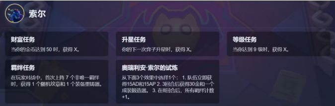 解析:相当于做任务,可以理解为S16的做任务,做了任务给对应的奖励。如果选过2次索尔,4-7会有索尔的试炼,也就是图中的最后一个,可以三选一。
