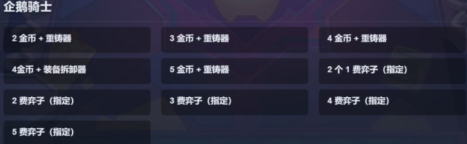 解析:简单的增加经济,常规的奖励金币和重铸器。后续给的弈子也是指定的,如果指定的卡能玩,也可玩玩。