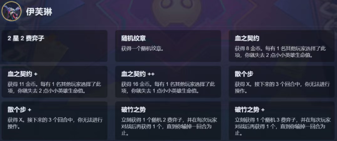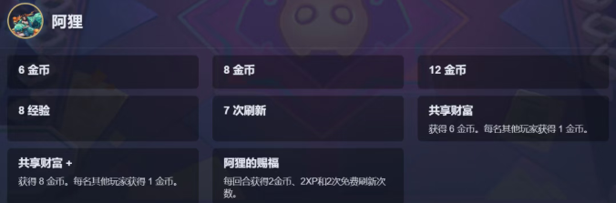 解析:适合玩95阵容,或者84追三星四费,全是经济或者经验刷新。如果选过2次阿狸,4-7会有阿狸的赐福(图上最后一个)。
