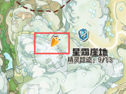 3、星霜花就在星霜崖地的左边一点的位置,大家来到图片下面的位置附近找一找就会看见。