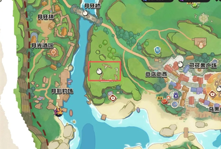 4、第2天需要上交7个【伞伞菌】,我们可以来到月影钓场的右边(红框圈起来的位置),附近找一找就有。