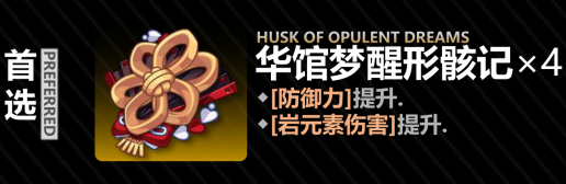 套装选择建议:建议优先选择[华馆梦醒形骸记4件套]或[晨星与月的晓歌4件套],两者差距不大,使用副词条更优的即可,可以使用[充能2+防御2]、[精通2+防御2]过渡。